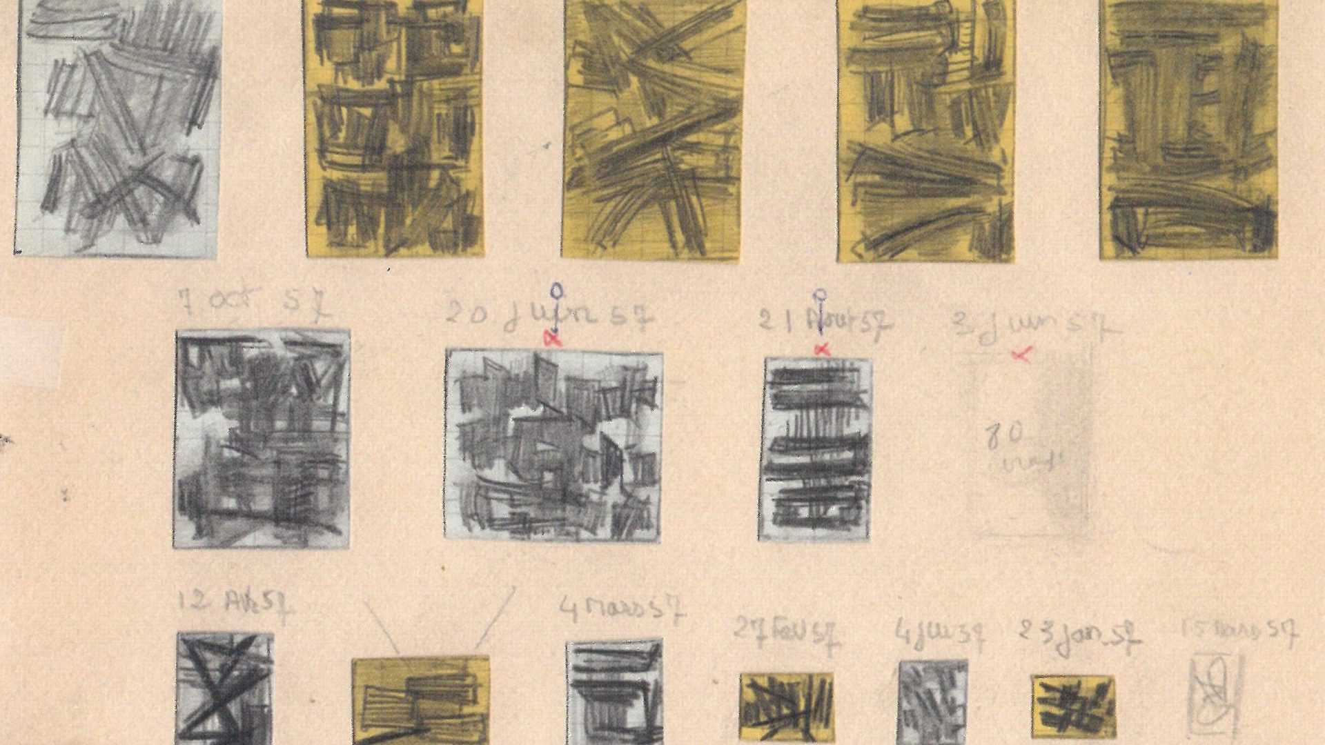 Esquisse de Pierre Soulages pour son exposition à la Kootz Gallery en 1957, Archives Soulages.